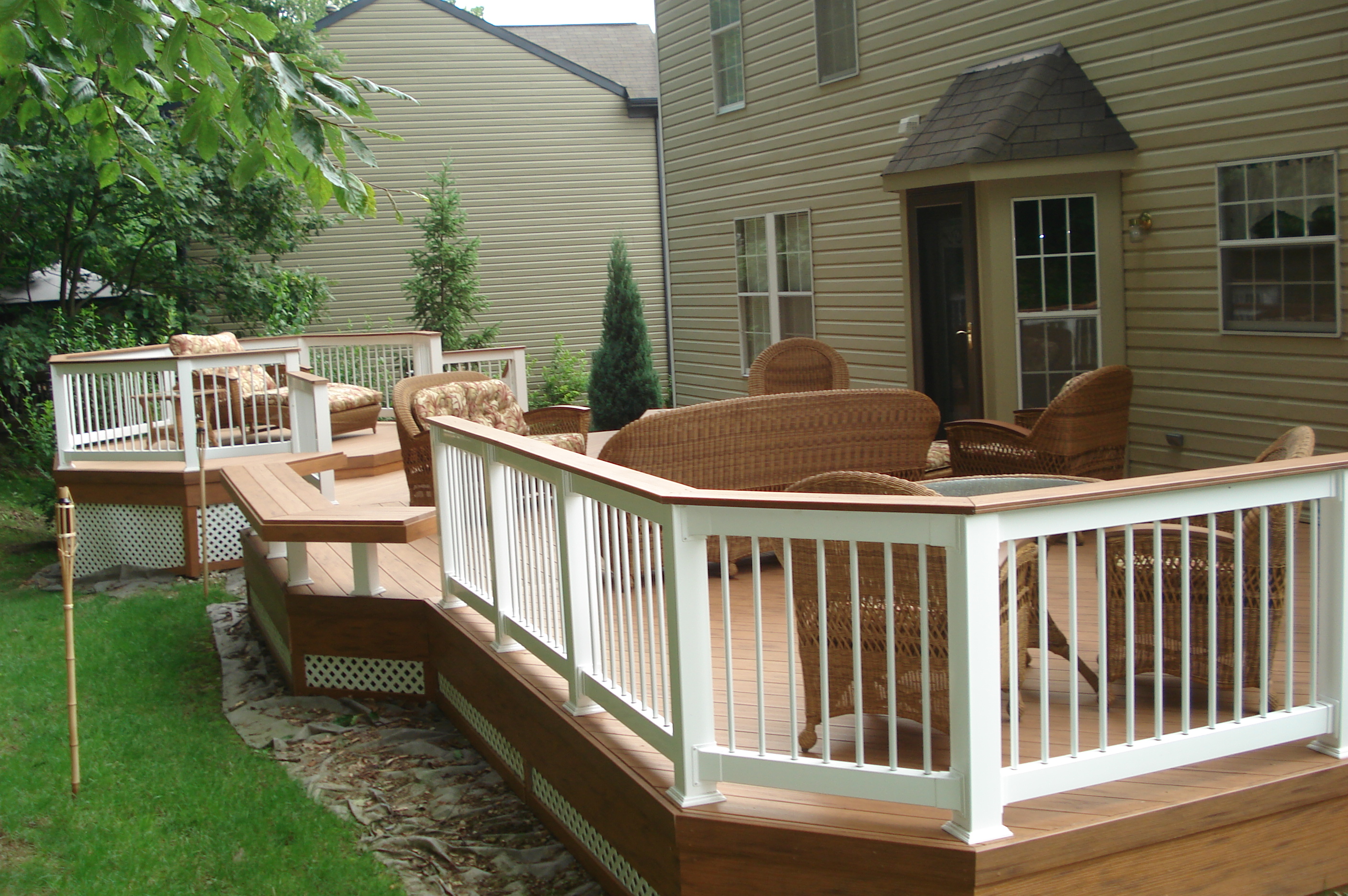 Composites come in all grades, colors, and price ranges. Tried and true is AZEK composite decking. AZEK is made from cellular PVC material and stands the test of time. It resists scratching, stains, splitting, is mold and mildew resistant and resists insects that can invade wood decks and destroy them. Their color choices are vast and they even make railing that is designed to complement your deck perfectly. It is also backed by some of the most comprehensive warranty in the industry.